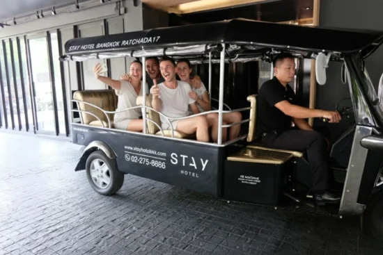 Our hotel provides a complimentary Tuk-Tuk shuttle service to and from the entrance of Ratchadaphisek Soi 17.
